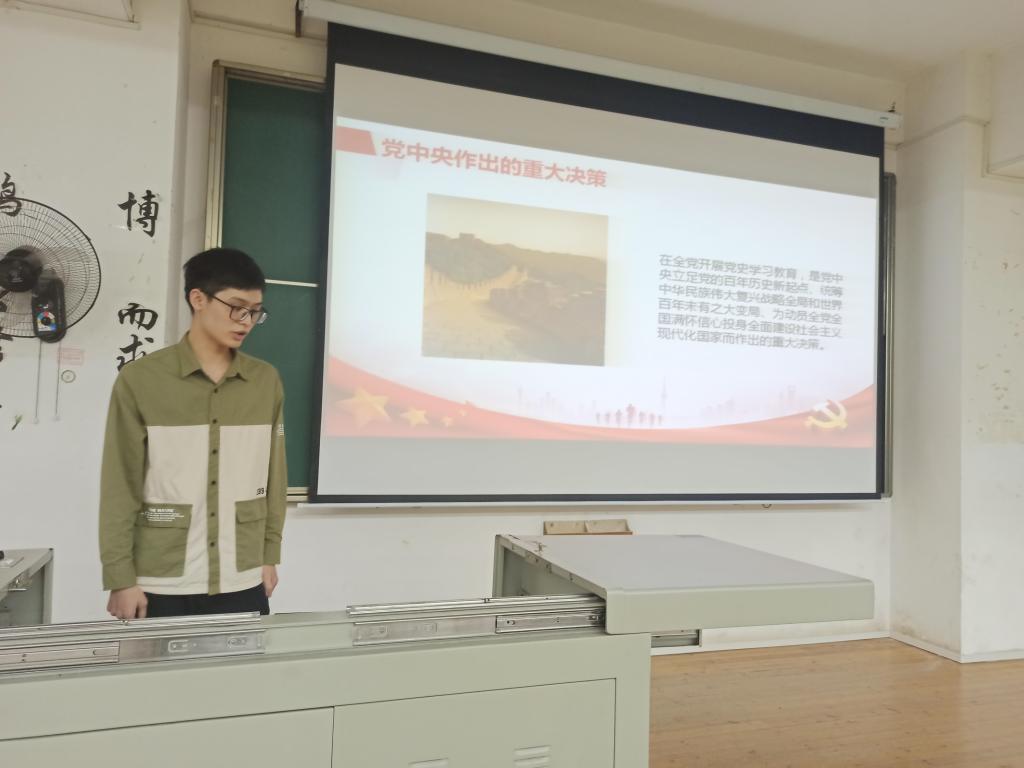 活动开始,主持人向同学们介绍了习近平新时代中国特色社会主义思想,并且强调了本次比赛的规则。紧接着11位主讲人开始了他们的演讲。他们以党史学习教育为契机,紧密围绕“学史明理、学史增信、学史崇德、学史力行”的主题,结合自身的学习成长的经历,阐述了自己在党的光辉历史中所领会到的精神。随着最后一名主讲人的演讲结束,团支部也开始展示他们的风采。演讲ppt中的一张张荣誉证书彰显了同学们积极向上、锐意进取的精神。同学们的精彩表演更是将团支部积极昂扬的精神风貌展现的淋漓尽致,将活动一次次推向高潮。