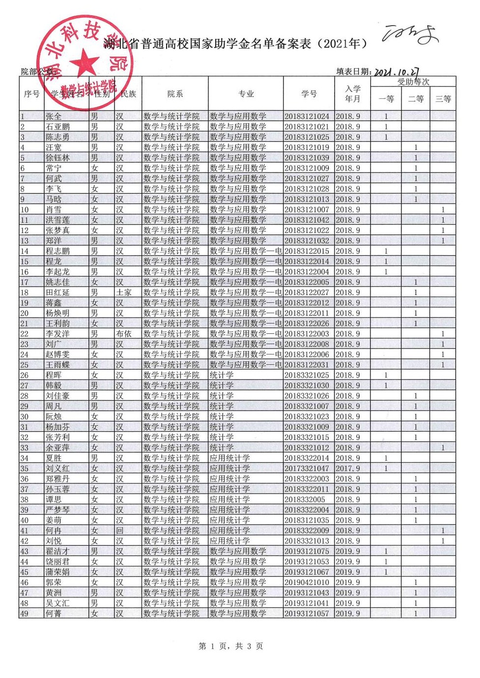 太阳集团网站87222021年国家励志奖学金和国家助学金评审结果公示