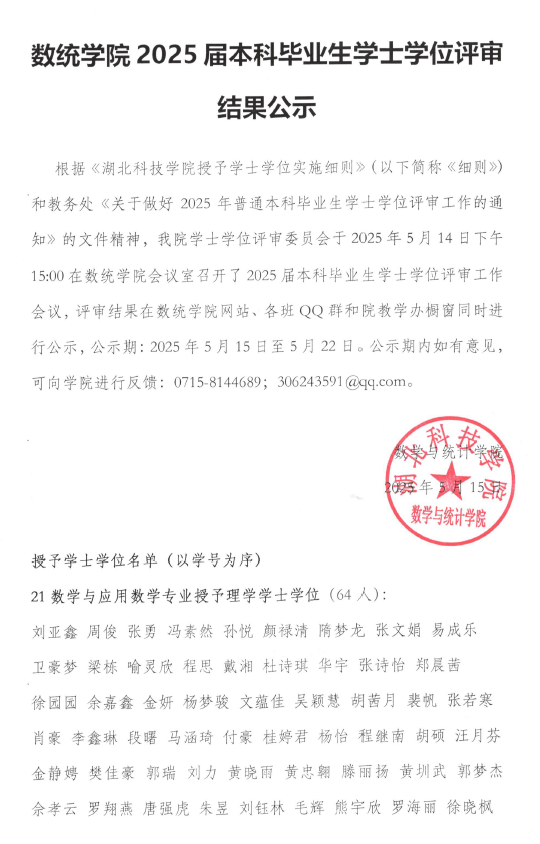 太阳集团网站87222025届本科毕业生学士学位评审结果公示
