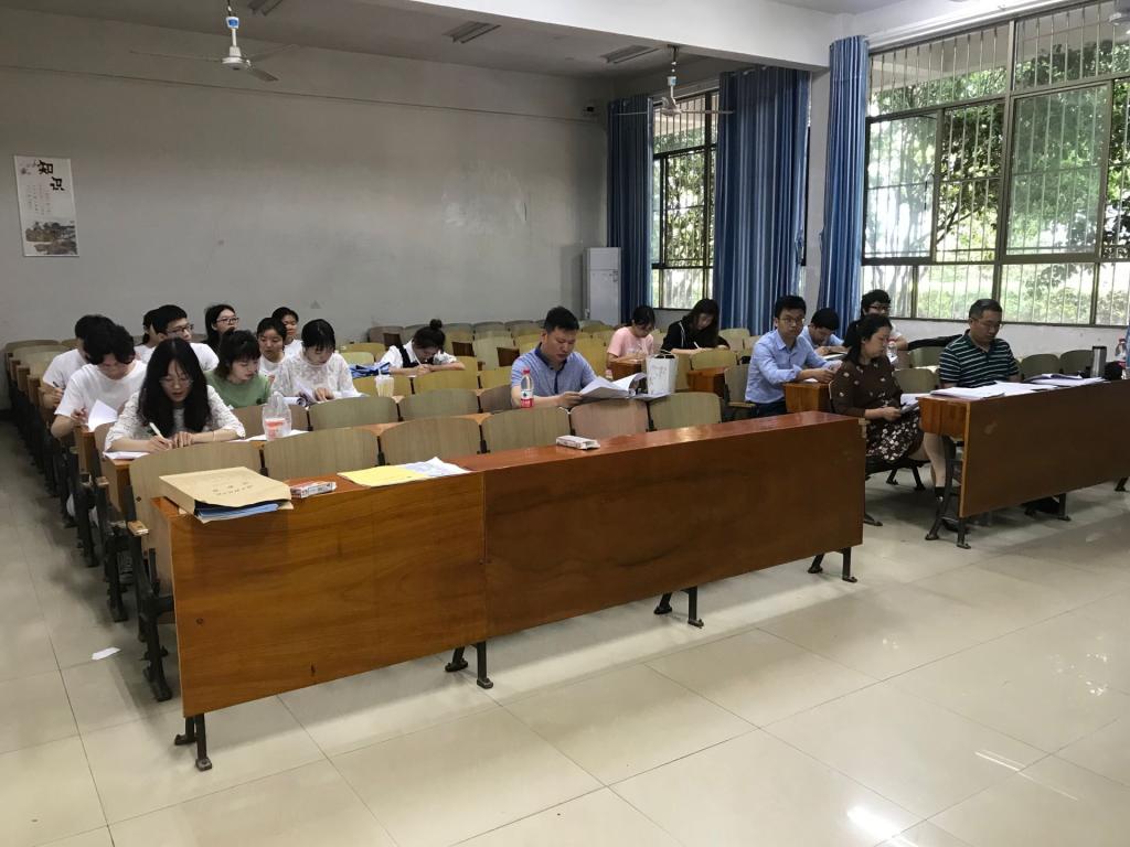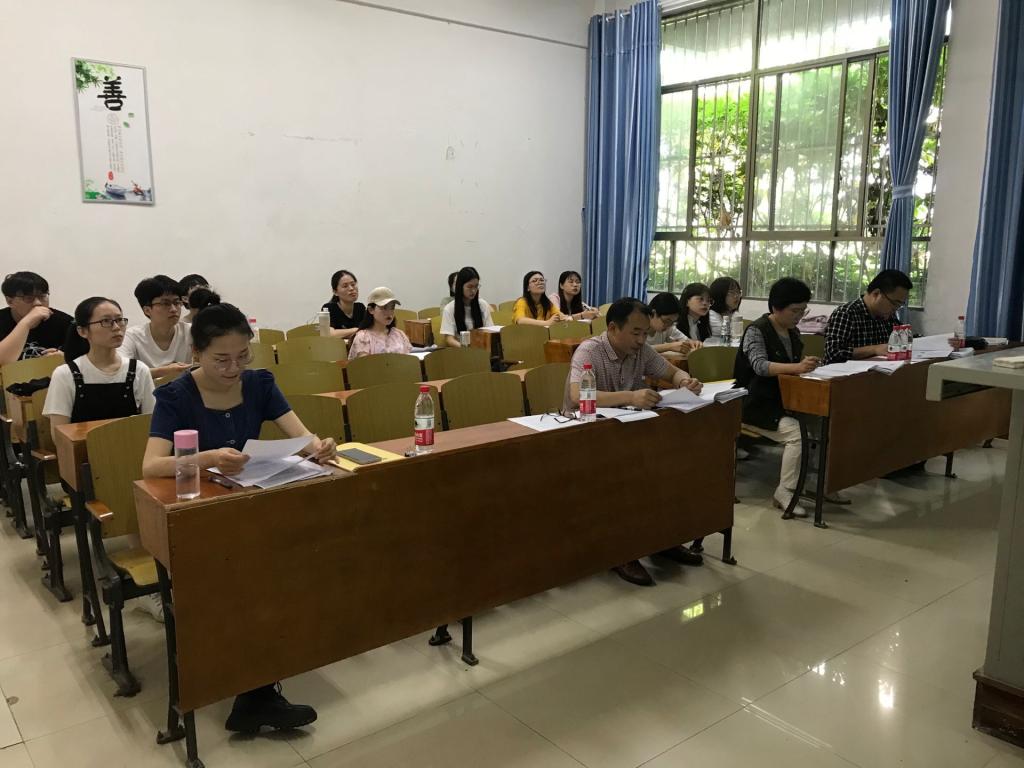 (答辩现场教师评阅学生论文)