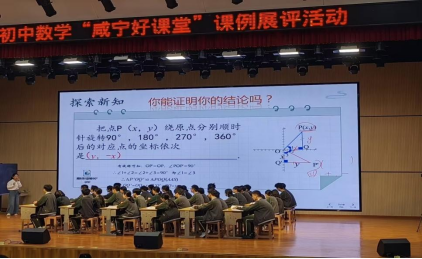 首先,第一位参赛老师——陆恒老师。通过回顾旧知、结合生活实例的导入,开展本节课的教学,讲解了每旋转90°,点的横纵坐标的绝对值交换,符号看象限。同学们在整个教学过程中学会了如何将复杂问题简单化,将抽象问题具体化。