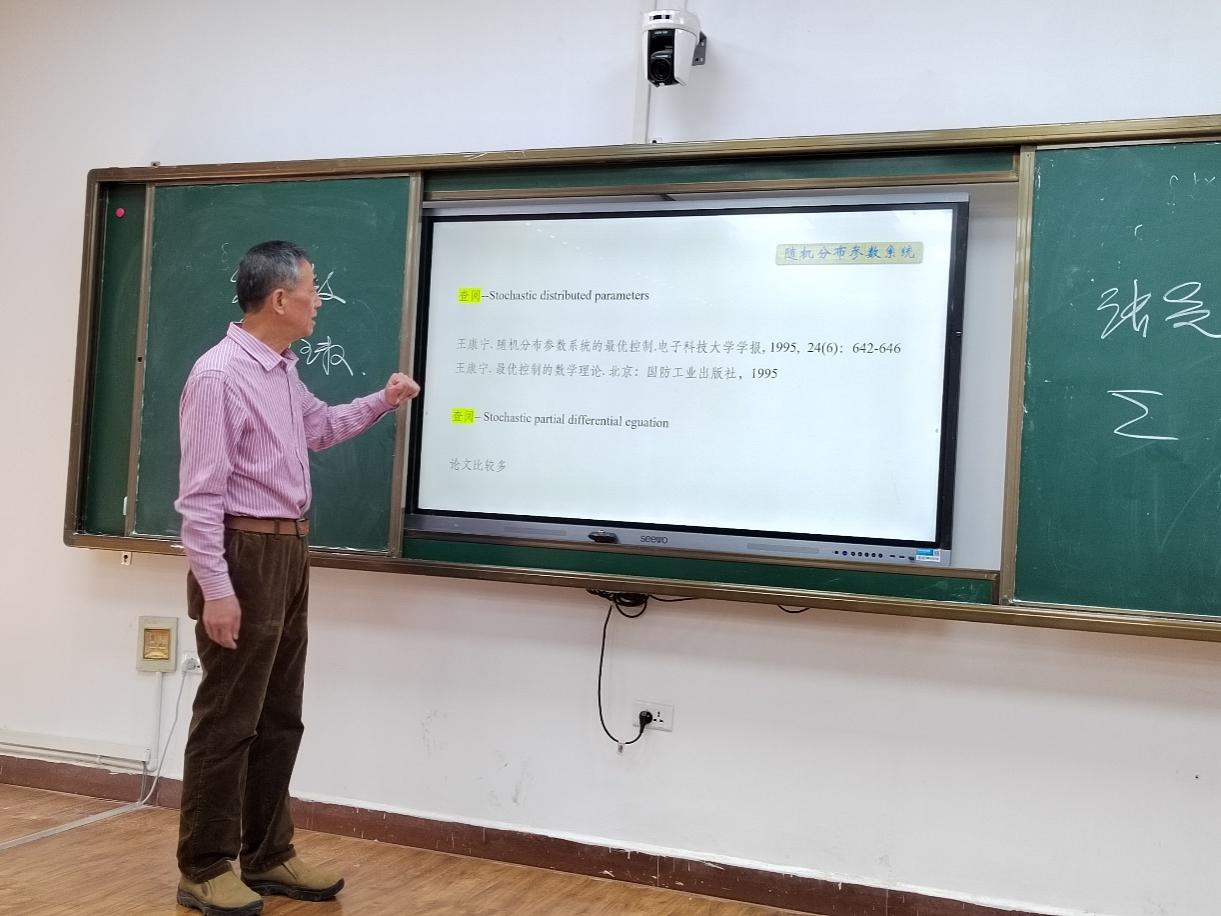 首先陈院长简单介绍了罗琦教授。接着罗琦教授以一个长者的身份,从自己的求学、科研、管理经历出发,特别是对于年轻老师如何科研起步、如何申报基金、以及大学生如何学好数学等方面毫无保留的给出了自己的心得体会和建议。最后罗琦教授分享了他在离散状态观测值的混合随机微分方程依分布镇定研究的相关成果。