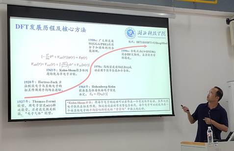 在随后的主题报告环节,两位优秀教师带来了精彩的学术分享。数统学院的方文玉老师以“基于理论计算研究二维晶格光解水析氢及激子特征”为主题展开报告。方老师深入浅出地介绍了二维晶格在光解水析氢领域的前沿研究,通过理论计算揭示了其中的激子特征,为解决能源领域的析氢难题提供了新的思路和方向。报告过程中,方老师结合丰富的图表和数据,详细阐述了研究方法和成果,让在场师生对这一复杂而前沿的课题有了更清晰的认识。陈生安院长主持了方文玉老师的报告,并在互动环节引导师生积极提问,促进了学术思想的碰撞与交流。
