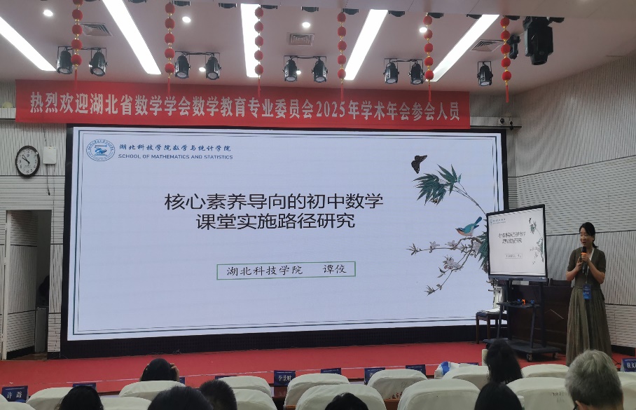 在此次大会的分组报告中,数学教育教研室负责人谭佼老师做了题为《核心素养导向的初中数学课堂实施路径研究》的报告。她剖析了在初中数学课堂中,如何精准聚焦核心素养,构建行之有效的实施路径,为一线教师提供了教学思路。