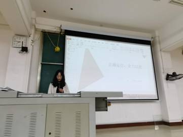 接着是来自17数应班的胡欣欣,她从政治、英语、教育综合、数分高代综合这四门考研科目复习方法为同学们进行了讲解,让同学们明白了如何选择复习资料、如何掌握考点。期间,胡欣欣也通过她身边的同学因为没有一直坚持最后选择再战的故事,告诉同学们考研是一段艰难困苦的旅程,要坚定信念,不要半途而废。