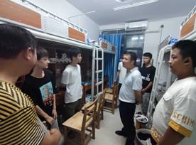 不论男生寝室还是女生寝室,各带队老师们都走遍了新生的每一间宿舍。院领导和辅导员对学生宿舍安全、卫生、设施、文化建设等方面逐一进行了检查,叮嘱在宿舍的同学提升安全意识,杜绝克服“网瘾”,养成良好的学习、卫生和作息习惯,气氛温馨而愉快。走访中,陈生安与学生亲切交谈、嘘寒问暖,他说,学生宿舍是大学校园里一个非常微小的“细胞”,建设什么样的宿舍文化对于大学生的成长成才至关重要。他勉励同学们:一要强化思想政治引领,以宿舍为抓手建设学习型组织,让宿舍成为学生提高政治觉悟、树立远大理想、坚定崇高信念的学习之地,真正提升宿舍文化育人实效;二要建设积极向上的宿舍文化,培育和弘扬社会主义核心价值观,做到知感恩、讲诚信、行礼仪,形成好学、乐学、善思、修身的生活方式、文明习惯和宿舍文化新风尚;三要发挥主人翁精神,凝聚宿舍集体智慧,把约束要求内化为行为自觉,把宿舍建设成“讲学习,讲政治,讲正气,讲团结,讲文明,讲纪律,讲奉献,讲成才”的文明之家。