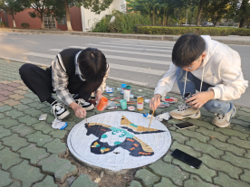 来自计算机科学与技术学院的画手李泽斌表示,“绘画井盖不仅让校园整体变得更加靓丽,也促进了校园的文明和谐。画井盖既是对井盖的一种保护,上面的内容也是一种宣传。绘画过程虽然有些辛苦但还是有价值的,也能给同学们带来不一样的视觉冲击,当绘画完成时,我们都觉得很有成就感。”