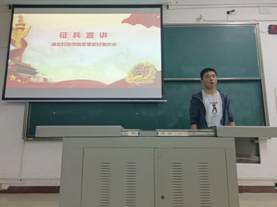 接着,来自电子与信息工程学院的韩申同学为大家讲解了征兵的要求、优惠的政策、复学就业等问题。口腔与眼视光医学院的陈绪光同学分享了他的军旅故事,并说到:“当兵后悔两年,不当兵后悔一辈子。的确,在我服兵役的这段时间当中,我深刻地体会到什么是中国速度和男子汉的责任担当,可是我并不后悔!”通过他们的讲述,同学们清楚地了解到了征兵的条件和优待,也明白军人的艰辛和磨难,同时感慨他们深厚的战友情。