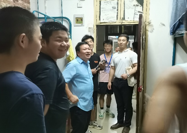在走访的过程中,老师们亲切地与同学们打招呼,并询问同学们来自哪里,衣食住行、生活是否习惯等方面的问题。同学们纷纷表示正在积极地适应学校的生活环境,适应大学生活,转变身份。陈院长和卢书记在与同学们交谈中提道:“尽管大家来自不同的地方,有着不同的生活习惯,但如今来到了一间寝室,就是一个整体,要互帮互助,互相学习,凝聚每个人的力量,营造积极向上的宿舍环境,度过一段充实难忘的大学生活。”