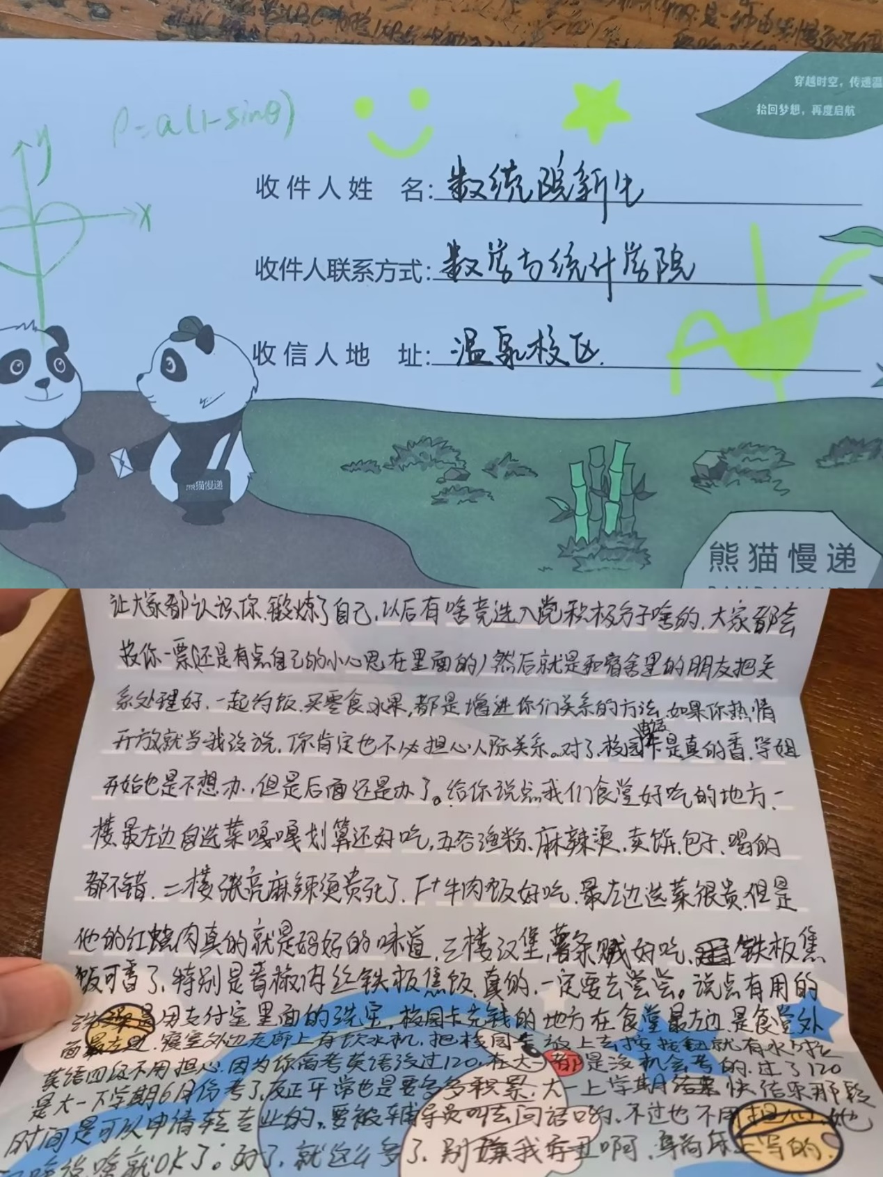 在信笺中,老生们将真心话一字一句写下来,作为给小萌新们“初来乍到”的赠礼。他们在信中写道:“希望你在大学锻炼自己的人际交往能力,学会做人、学会做事。”“希望你有欣欣向荣的学业、心心相惜的友情,度过人生中最美好的大学时光……”