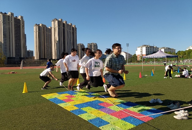 此次心理运动会共有“六人七足”、“同心鼓击球”、“中心游戏”、“指压板跳绳”、“无敌风火轮”、“毛毛虫竞速”以及团体拔河共七个游戏项目。尽管天气炎热,但参赛队员们个个面带笑容,昂首阔步,展示出青年特有的朝气与活力。“六人七足”与“同心鼓击球”中,各班参赛队员们团结协作、配合默契,在赛场上奋力拼搏,“毛毛虫竞速”与“无敌风火轮”考验着参赛队员的耐力与恒心,“中心游戏”、“指压板跳绳”以及拔河项目中,参赛队员们根据实际情况及时调整战术,在阳光下挥洒着汗水,全身心地投入到比赛中去。