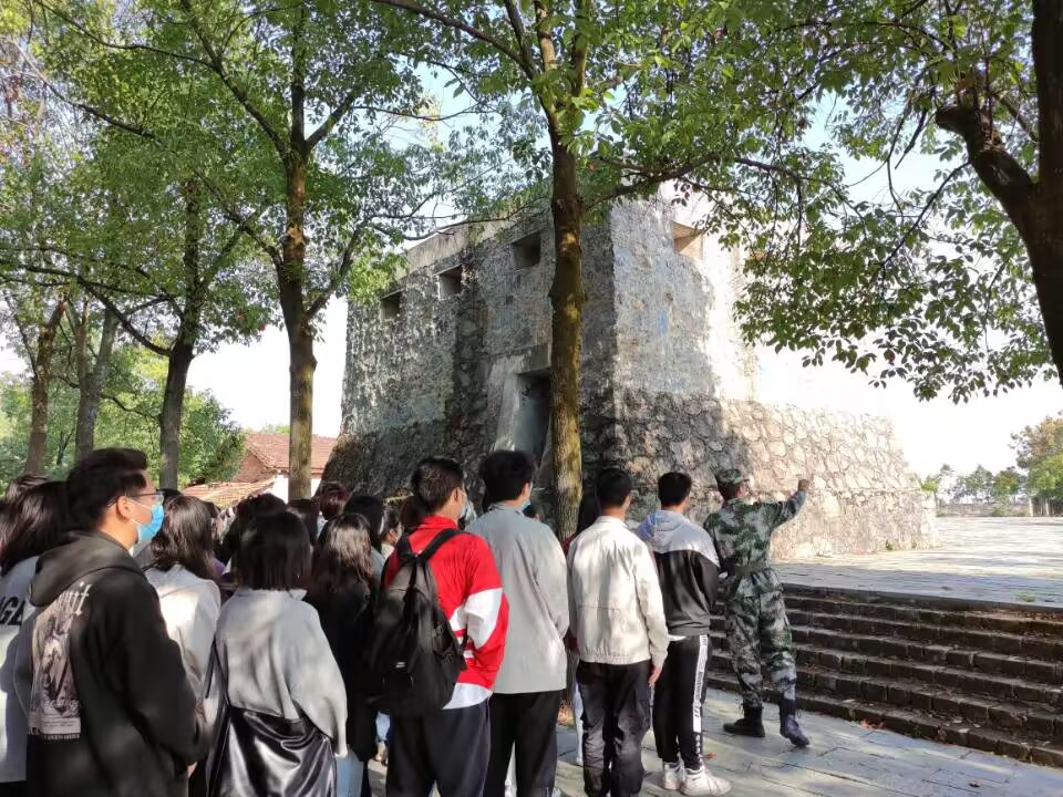 故垒依旧,鼓角如问。午饭过后,在李教官的带领下,同学们来到汀泗桥,重走北伐汀泗桥战争路线,触摸当时的作战时碉堡、猫儿洞、战壕,亲身感受当年那段火热的历史,一砖一石似乎都在诉说着北伐战士的英勇和革命胜利的艰辛。