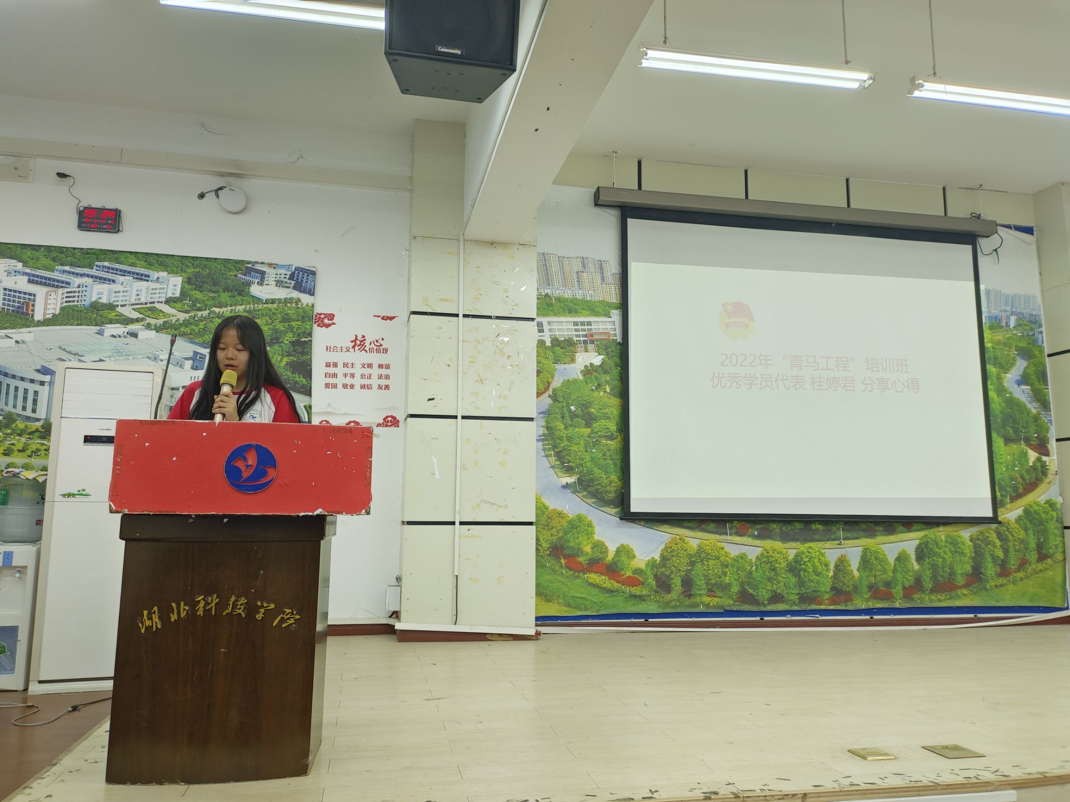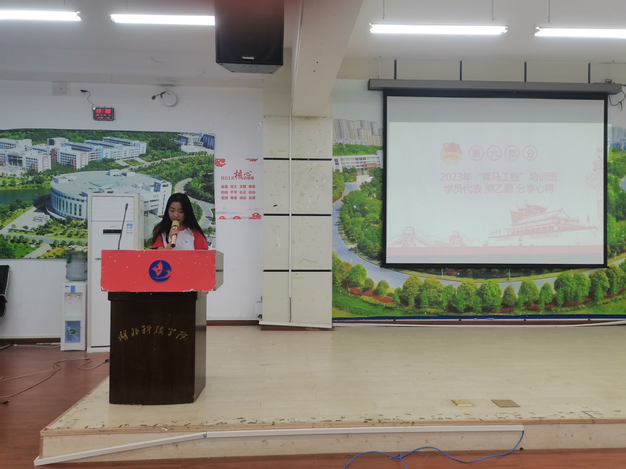 大会在庄严的国歌中拉开帷幕。太阳集团网站8722辅导员曹键老师宣读了关于太阳集团网站87222023年度“青年马克思主义者培养工程”第二期培训班结业学员及优秀学员名单,并为学员们颁发优秀学员证书和结业证书。随后,第二期青马班优秀学员代表桂婷君同学分享了自己在过去一年的学习心得和感悟,号召全体学员将在青马班所学的知识运用到生活实践当中,做到知行合一。第三期青马班成员代表熊乙蔚同学也进行了郑重发言,她表示广大青年应积极传承发展优良品格,认真学习马克思中国化理论,增强自身责任感和使命感。