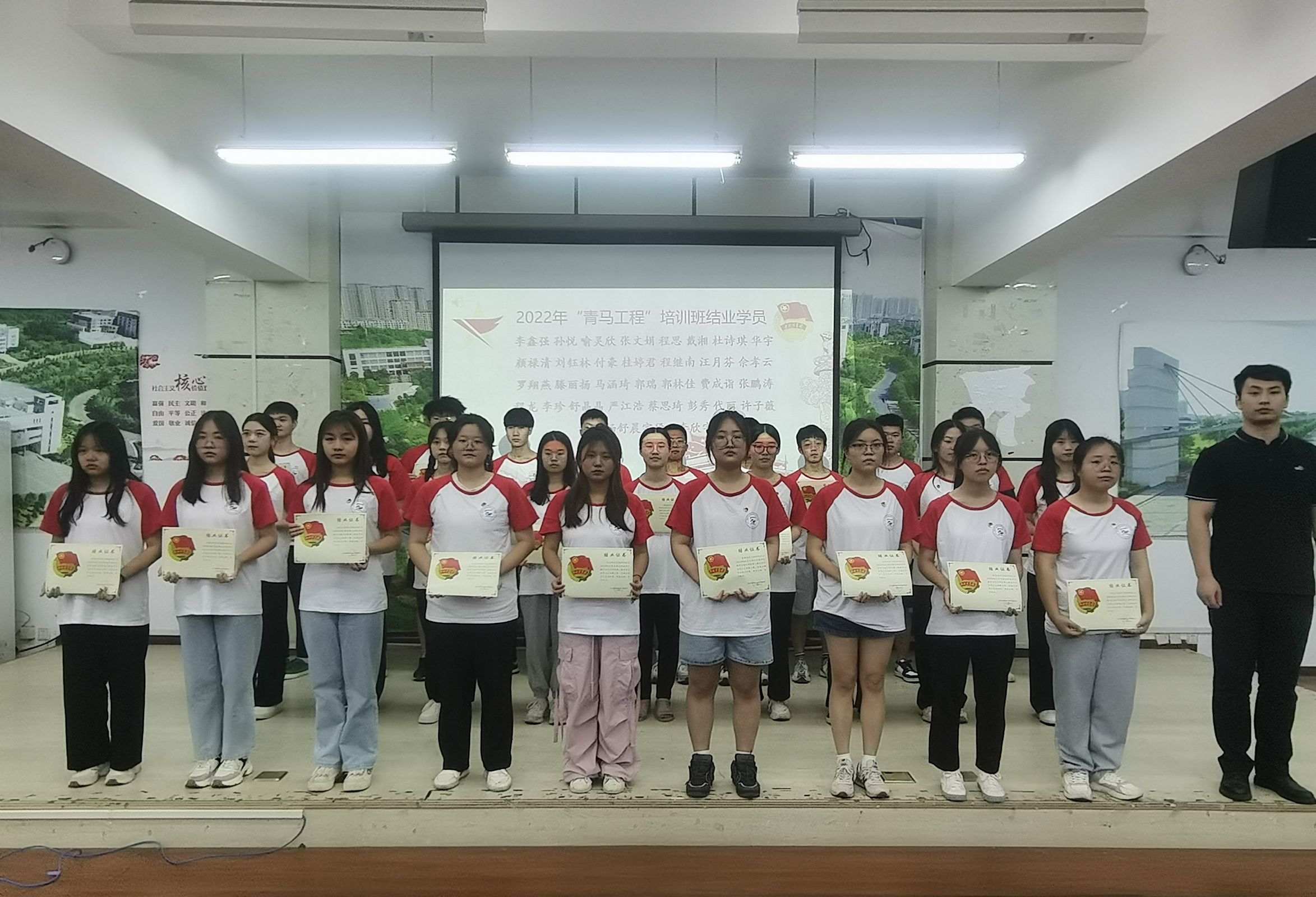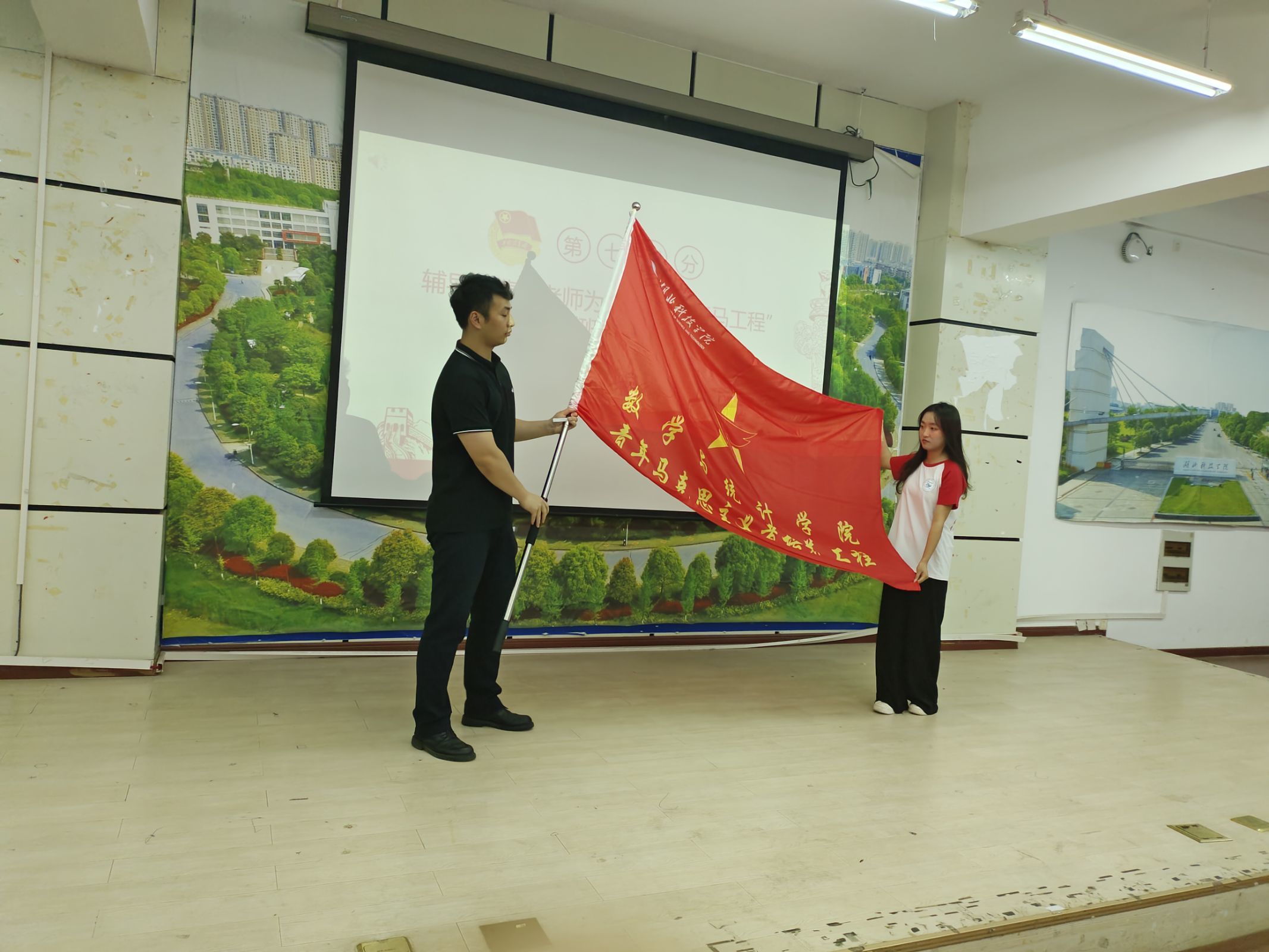 在全体学员的热烈掌声中,太阳集团网站8722辅导员曹键老师为第二期青马班成员颁发结业证书并为太阳集团网站87222023年青马班授予班旗,第三期“青马工程”培训班正式拉开序幕。最后,第二期青马工程培训班优秀学员代表付豪同学带领大家一同重温入团誓词,同学们掷地有声,眼神里面充满坚定。