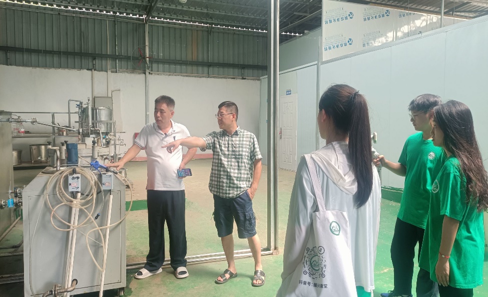 位于赤壁市的惠尔精参农业科技有限公司聚焦炼油产业,依托科技创新,采用物理初榨的方式制成低芥酸高油酸的成品油。在该公司负责人谢鹏韬同志的带领下,团队成员及指导老师共同参观了炼油全过程。谢鹏韬同志介绍说榨油所需的所用原材料包括但不限于芝麻、花生、山茶籽、菜籽等皆来源于周边乡镇农户,原材料均有机无公害,这既保证了成品油的健康无害,又在一定程度上解决了周边乡镇相关农产品滞销的问题,通过产业赋能提高农产品附加值,增加了农户的经济收入,一定程度上推动了经济发展。