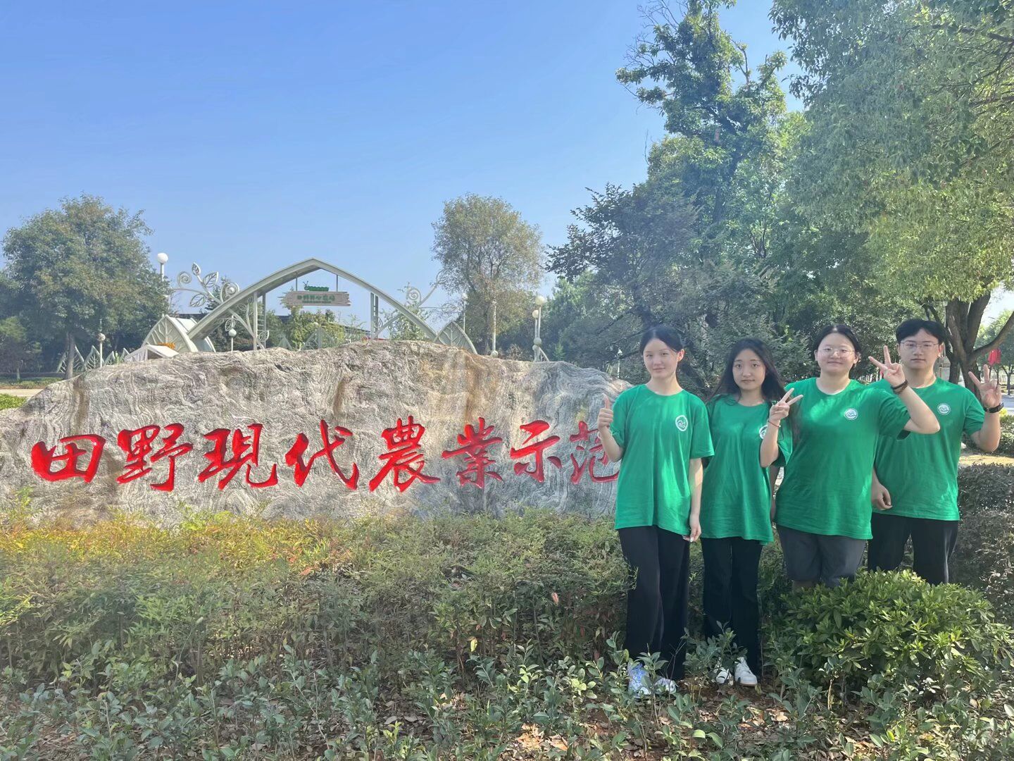 图为实践队成员在田野现代农业示范园合影留念