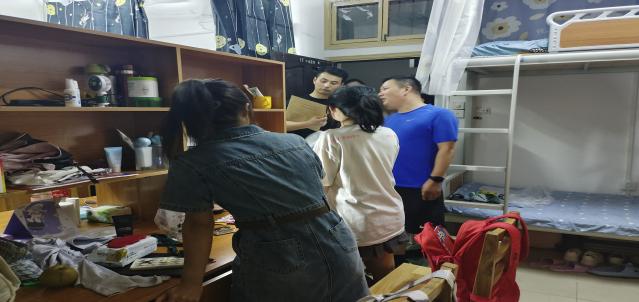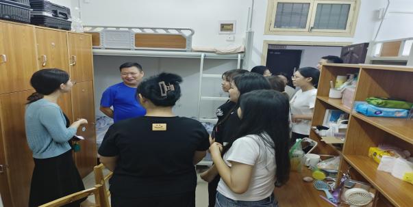在走访学生宿舍的过程中,陈院长也详细询问了解同学们的生源地、家庭背景、食堂的膳食是否合胃口、生活用品是否已备齐、对住宿环境是否适应、入校后的感受、住宿的设备以及与新室友的相处情况,了解同学们的家庭背景,倾听并记录同学们来校后所遇到的问题与困难,从“团结”、“包容”、“互助”、“奋进”等方面鼓励新生团结、友爱互助,为新同学们送上一份贴心的温暖。此外,他建议同学们调整好作息时间,以饱满的精神,参加军训。