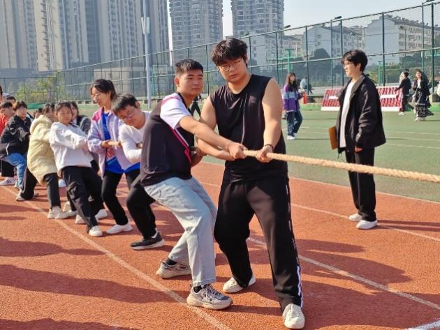 (绳索相连心,拔河胜千军)