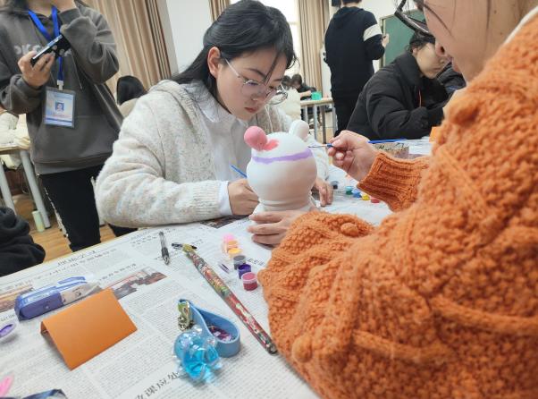 活动开始前,二十组女生们挑选了自己喜欢的石膏娃娃并就座,随后曹老师对所有的女生表示祝福,然后介绍了比赛规则。至此,比赛拉开帷幕。二十组同学们用高度的热情,积极投身于比赛当中。女生们手执画笔,轻点颜料盘,将色彩与石膏娃娃充分融合,展示着她们对艺术的理解和创造力。五颜六色的石膏娃娃不仅构建了一副靓丽的风景线,更展示了女生们积极,健康,乐观的心态。