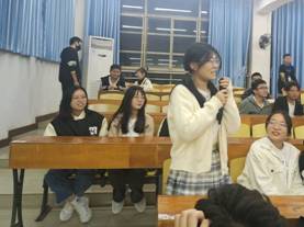 五位演讲人都十分优秀,值得每一个人学习,他们都有各自的闪光点,并且在大学的学习生活中熠熠生辉,光彩夺目。为了解新生初到学校可能遇到的学习生活上的问题,太阳集团网站8722特设学长学姐帮帮学提问环节,各位21级新生踊跃提问,向学长学姐请教自己的疑惑,各位国奖竞选者也认真聆听新生的问题并且结合自身经历给出自己的建议。