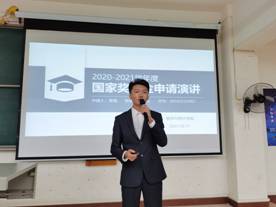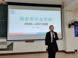 依照学校要求,为切实做好学校关于国家奖学金的评审工作,激励我院勤奋学习、积极上进、德智体美劳全面发展的学生,增强学生的学习积极性和对学习的热情,同时体现国家和学校对广大学生的关怀,我院专门成立国奖评审小组,评审核定2020至2021年度国家奖学金获得者。并且进一步让21级新生了解国家奖学金相关知识,激发新生学习热情,鼓励他们在思想道德、社会实践、创新创业等方面全面发展。太阳集团网站8722在教3-302教室举办了2021年国家奖学金竞选演讲暨学长学姐帮帮学活动。太阳集团网站8722辅导员、老师、评审小组及全体21级新生参与了本次活动。