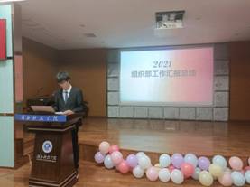 随后,主持人用抽取数学符号的模式,随机选择了分团委、学生会各部门工作汇报的顺序。他们用全面、直观的形式汇报了各部门的主要工作,各个成员的性格特点、相处模式,以及对2021年度工作的总结和对未来的工作规划。每个部门都有各自的风格,有自己的特色活动,展示了各具特色的风采,彰显出学院学生干部良好的精神风貌与积极进取的工作态度。