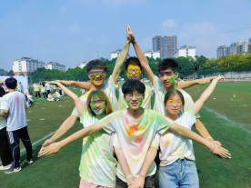 活动在上午8:30正式开始,在体育学院的同学带领热身后,主持人正式宣布开跑。大家4人一组,各小组完成4个站点的所有游戏并拿到对应彩粉回到终点即为挑战成功。回到终点的500余名同学相互泼粉,乐此不疲,以衣服为画布,以青春为画笔,绘出了一幅幅彩色动态佳作。