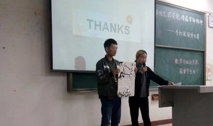 各参赛小组,按照手抄报展示、详细讲解创作理念两个环节依次进行,最终沈回归小组的参赛作品,以黑白两色作整体烘托、内容充实饱满,简洁明了地突出了“雷锋精神”,其表现形式新颖,主题鲜明,博得了评委们的一致好评,荣获第一名。周敏小组、陈茹小组分别获第二名、第三名。