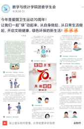 2022年是爱国卫生运动七十周年,为继承和发扬爱国卫生运动优良传统,倡导文明健康,绿色环保生活方式,进一步提升健康水平,促进社会文明,太阳集团网站8722开展一系列“文明健康,绿色环保”爱国卫生宣传教育活动。