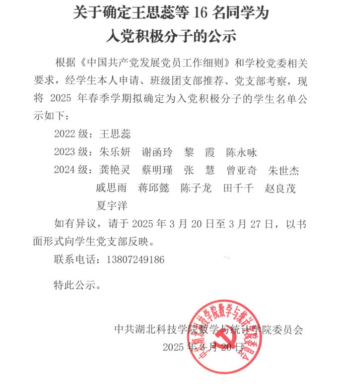 2025年上学年入党积极分子公示