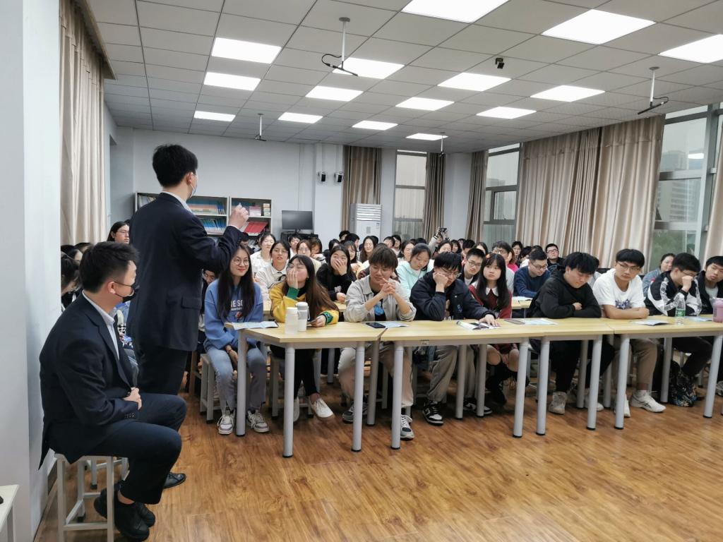 随后,由本院毕业进入咸宁分行工作的学长分享应聘经验和工作体会,以一个“过来人”的身份为即将毕业和进入实习的同学们提供了更全面的信息服务。他鼓励2018届学弟学妹们来中行展示能力,实现理想,并就同学们关心的问题进行解答,反响热烈。