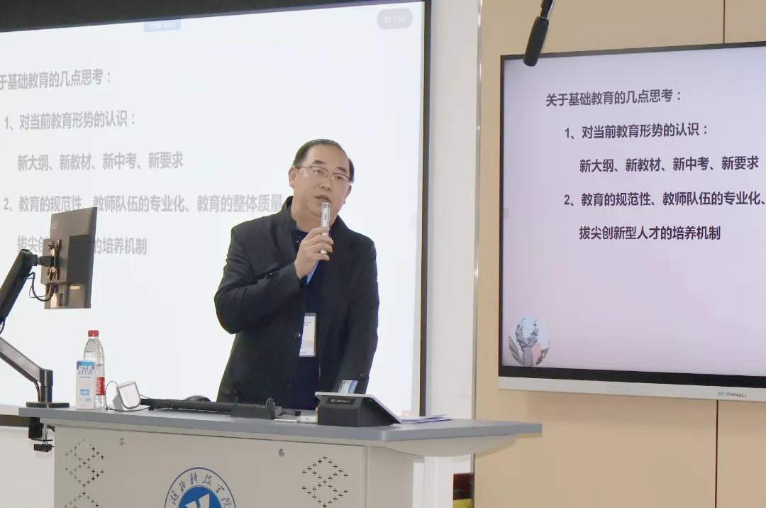 原鄂南高中副校长、特级教师刘堂利介绍了“十要六勤三学会”“立足基础,培养能力,注重细节”“团结协作,真诚互信”等教育教学工作理念,寄语师范生应强化班主任能力培养,成为优秀的中学教师。