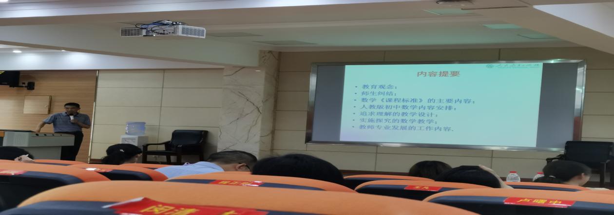 下午,幽默的邓老师从教育观念、《数学课程标准》内容、追求理解的教学设计、实施探究的数学教学等方面为我们阐述了初中数学设计需要注意的要点,为我们以后的如何写好教学设计指明方向。