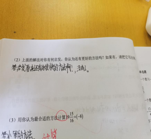 今天改作业的时候,有位学生特别有趣,题目说上面的解法对你有何启发,你认为还有更好的方法吗?如果有,请把它写出来?结果他说,启发原来还有比我快的方法啊!我当时看到瞬间笑出了声,这小朋友真是太可爱了。