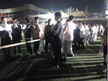 晚上六点半高一年级举办了拔河比赛。比赛开始后,操场上到处都是同学们呐喊助威的声音,参加队员一个个弓着腿,身子后倾,有的脸憋得通红,大家都抓紧了绳子卯足劲向自己方向拉,老师们在一旁也在不断地鼓励加油,虽然大家都很努力,但由于实力悬殊还是输掉了比赛。通过这次拔河比赛,同学们收获了许多欢乐,也体会到了团结的重要性。