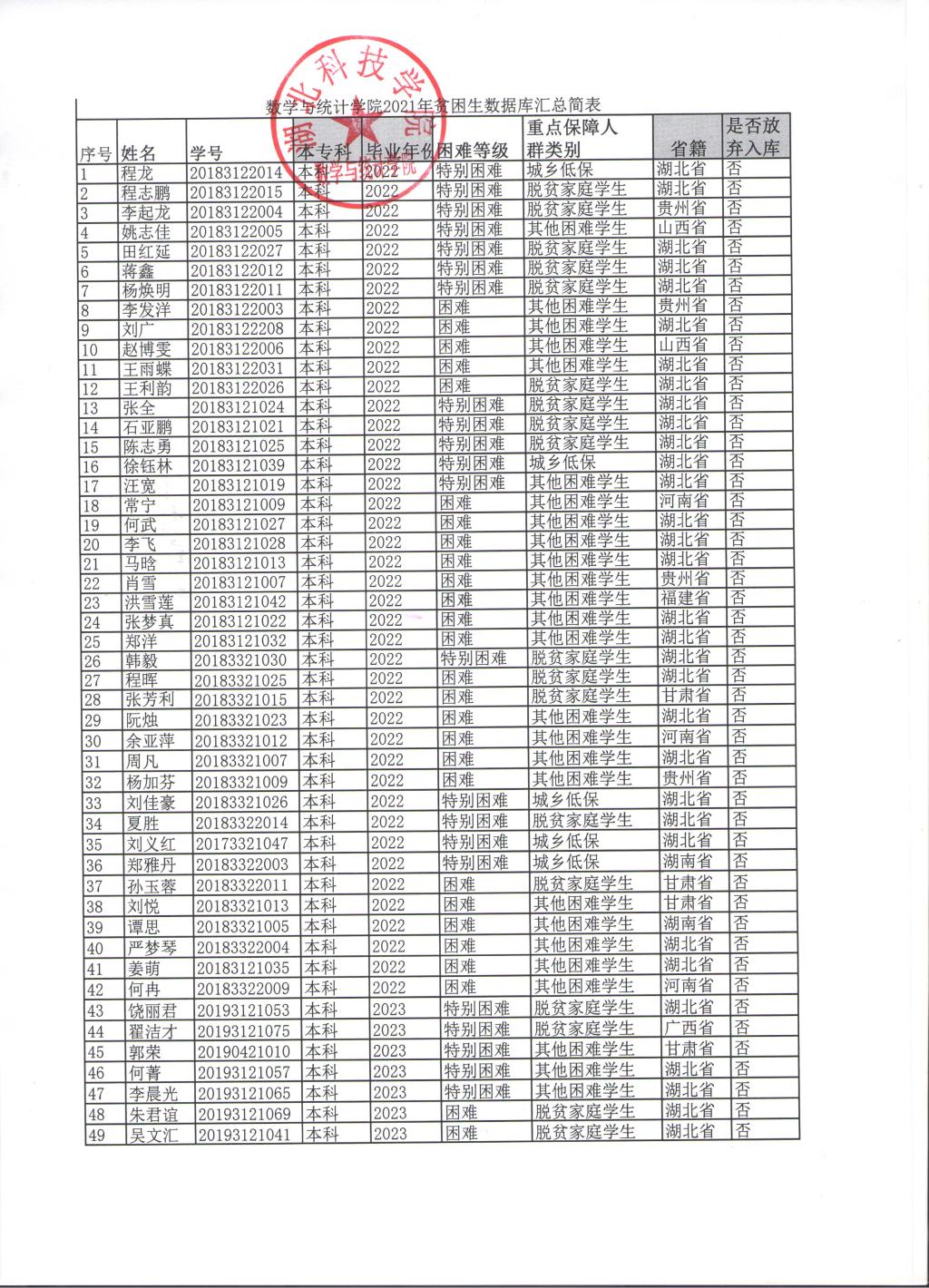 太阳集团网站87222021年贫困生数据库公示
