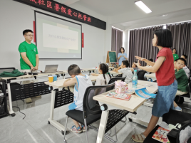 在产业振兴单元,志愿者以咸宁本地声名远扬的特色产业——桂花为切入点,带领社区的孩子们踏入产业振兴的知识课堂,用通俗易懂、活泼俏皮的语言,结合一个个独具本地特色的鲜活例子,将产业振兴的奥秘娓娓道来,课堂氛围瞬间被点燃;文化振兴环节,以咸宁咸安区、通山、通城、崇阳、赤壁、嘉鱼六个县区为主线,引领孩子们穿梭于咸宁各地,领略不同地区风格迥异的文化符号;人才振兴板块,以“新职业技术农民猜猜猜”小游戏为引,引领孩子们认识了解现代新职业技术农民的主要类型及工作,通过"假如我是小小村支书"的角色扮演,激发孩子们对乡村未的无限想象。